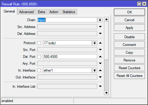 2add action=accept chain=input dst-port=500,4500 in-interface=ether1 protocol=udp