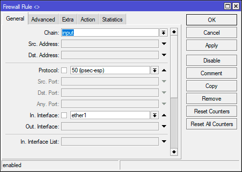 3add action=accept chain=input in-interface=ether1 protocol=ipsec-esp