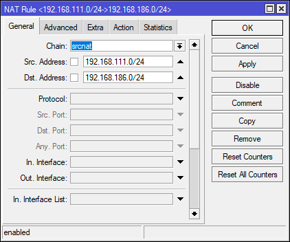 2add action=accept chain=srcnat dst-address=192.168.186.0/24 src-address=192.168.111.0/24 place-before=0