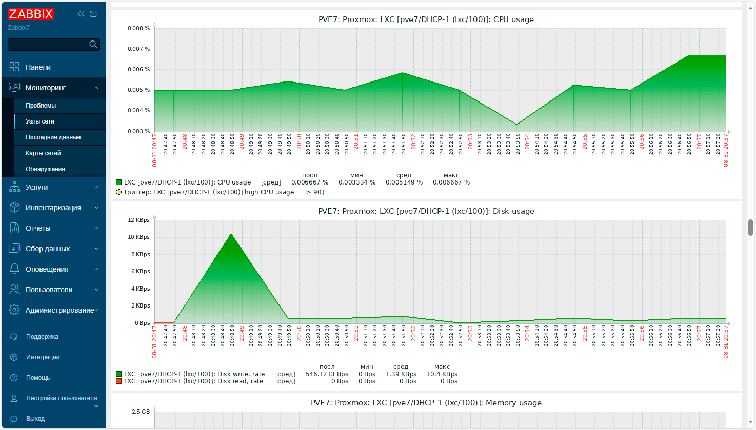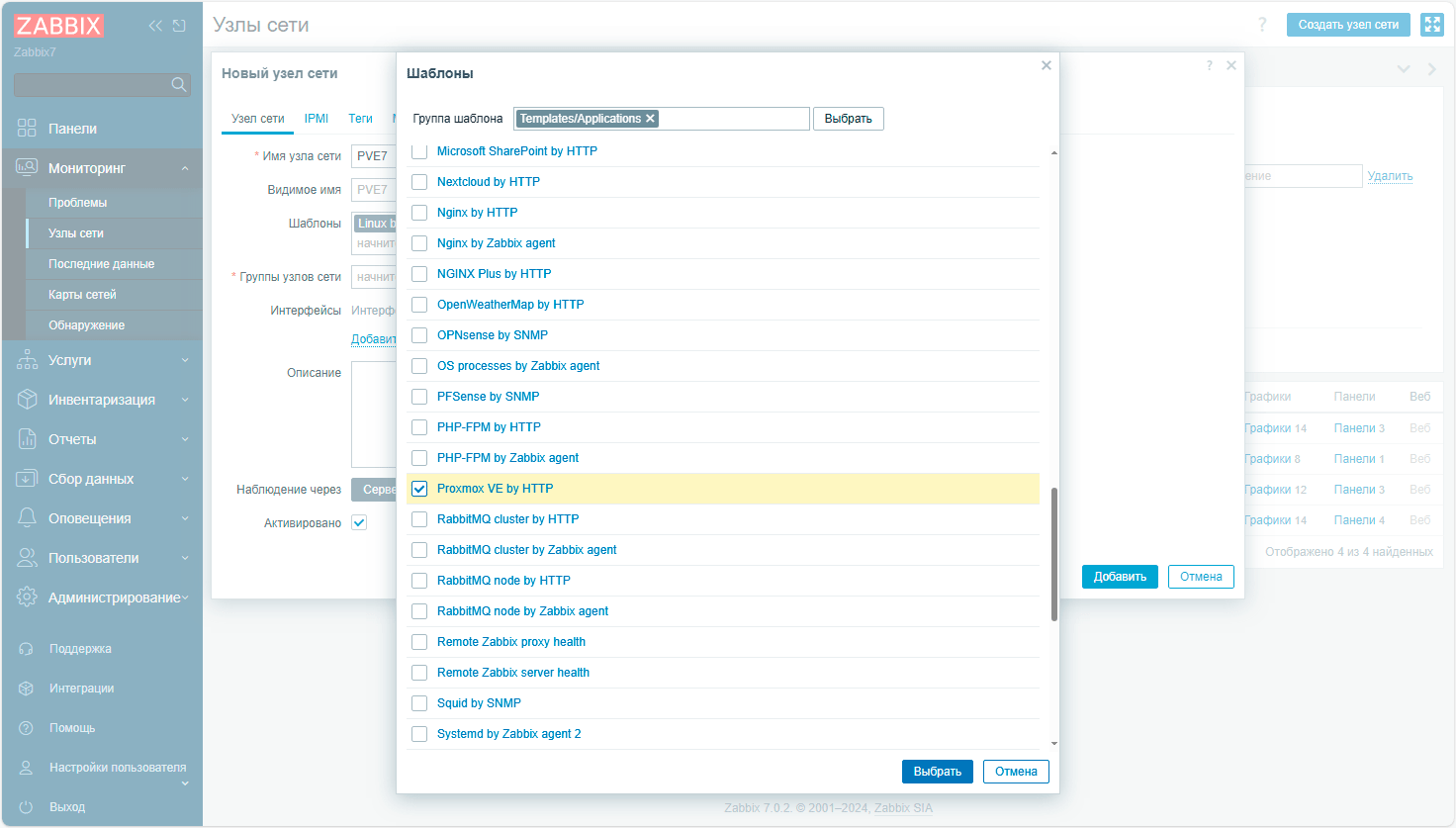 Добавление узлов Proxmox Virtual Environment в Zabbix