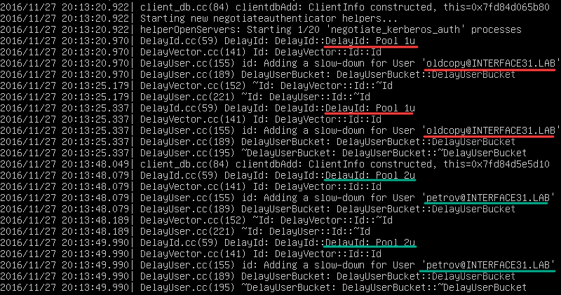 После чего в файл /var/log/squid3/cache.log будут записываться события связанные с пулами задержки. Взглянем на пример такого лога: