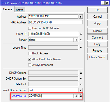 После чего на закладке General станут доступны дополнительные настройки, нам нужно указать для каждого устройства свой список адресов. В нашем случае мы создадим свой список для каждого ребенка и еще один для устройств общего пользования. Внизу закладки найдите поле Address List и выберите нужный список, если он отсутствует, то просто укажите его название, он будет создан автоматически.