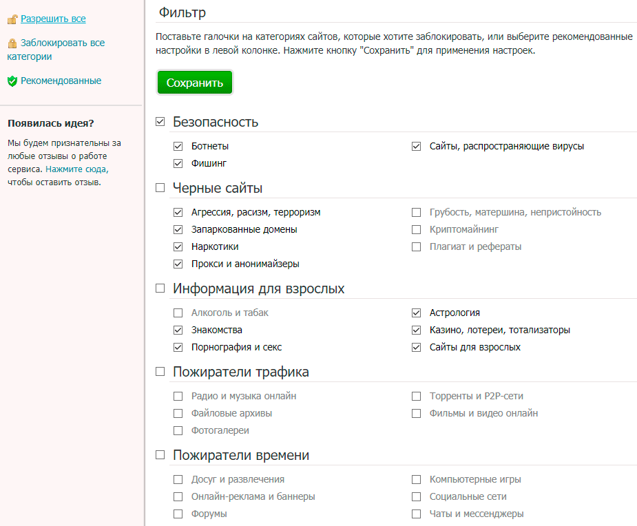 В общем, за два года использования данный сервис подтвердил свою эффективность и гибкость в использовании, по мере взросления ребенка часть фильтров можно отключать, предоставляя ему больше свободы в сети, не отказываясь при этом от контроля по тематикам ресурсов.