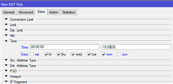 3add action=dst-nat chain=dstnat dst-port=53 protocol=tcp src-address-list=COMMON time=8h-18h,mon,tue,wed,thu,fri to-addresses=77.88.8.7