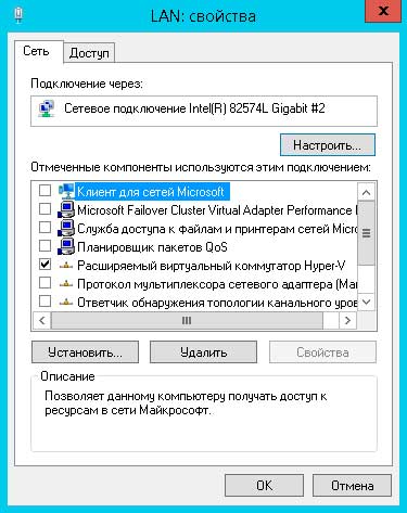 А в свойствах физического адаптера остался только Расширяемый виртуальный сетевой коммутатор в Hyper-V.