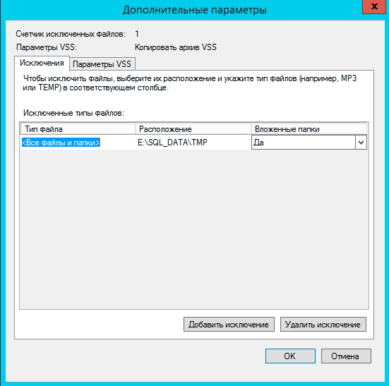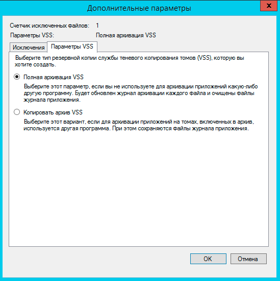 А также задать параметры службы теневого копирования, если у вас есть приложения использующие данную службу, например, MS SQL Server, то следует выбрать настройку Копировать журнал VSS, что обеспечит их нормальное взаимодействие со службой теневого копирования, в том числе и при восстановлении.