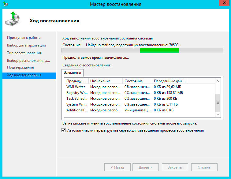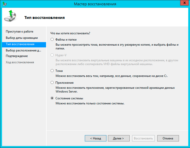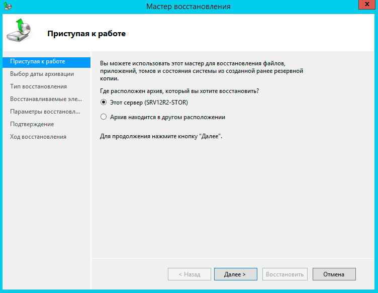 После чего указываем, что именно мы хотим восстановить: