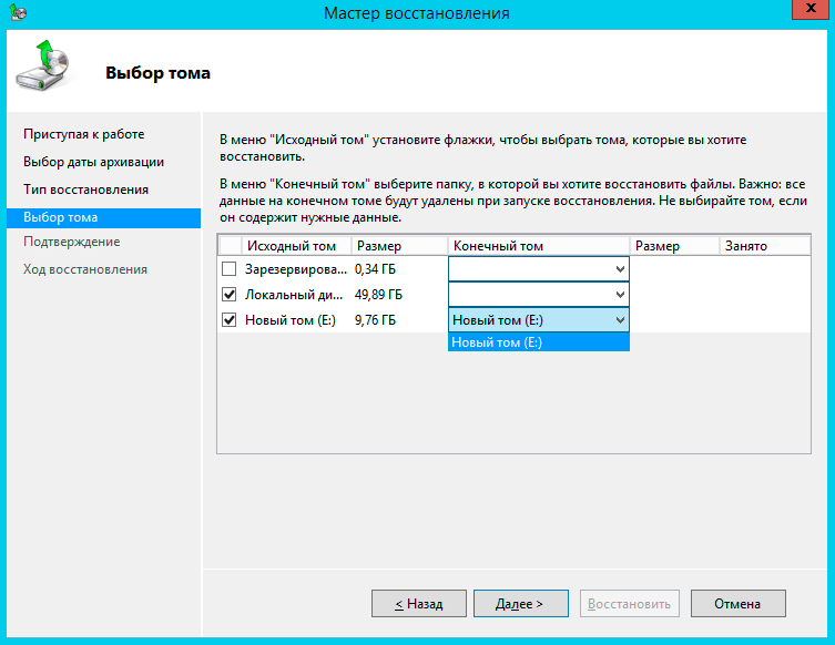 Альтернативой восстановления состояния системы может служить восстановление на уровне тома, при этом все данные будут уничтожены и том будет приведен в состояние, в котором он находился на указанную дату. Это может оказаться полезным в случае вирусного инцидента, когда вы хотите быть уверенным, что в системе не осталось закладок вредоносного ПО, а также в случаях, когда исходный том был поврежден.
