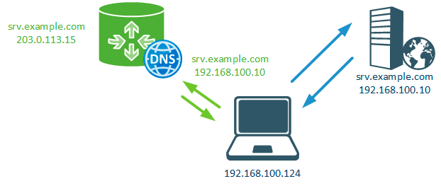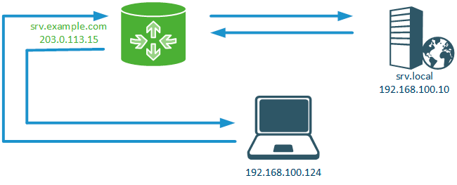 Как можно этого избежать? Очень просто, настроим на локальном DNS-сервере статическую запись, которая на запрос адреса сервера будет отдавать его внутренний адрес. Теперь, оказавшись внутри периметра локальный клиент будет общаться с сервером напрямую, минуя роутер. При этом везде за пределами локальной сети адрес сервера по-прежнему разрешается во внешний адрес. Это и есть двойной горизонт DNS.