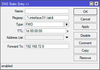 2add forward-to=192.168.72.8 regexp=".*\\.interface31\\.lab\$" type=FWD