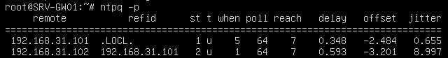 В выводе обращаем внимание на колонки: when -время с последнего ответа сервера, pool - время опроса сервера, offset - разница времени в секундах.