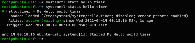 Теперь нам остается последний штрих - добавить таймер в автозагрузку, для чего воспользуйтесь командой: