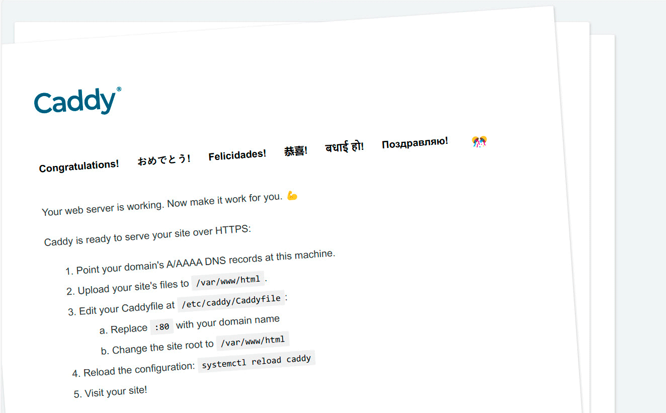 Кстати, данная страница содержит краткую инструкцию по запуску веб-сервера, это все, что достаточно выполнить для получения работающего и безопасного современного сайта. Просто? Очень просто. Но мы выполним более тонкую настройку.