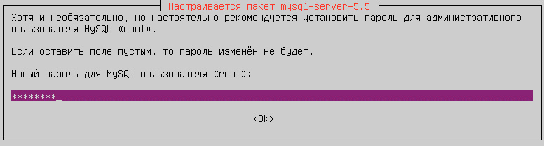 В процессе установки вам будет предложено ввести пароль для суперпользователя MySQL (root), которого не следует путать с суперпользователем системы.