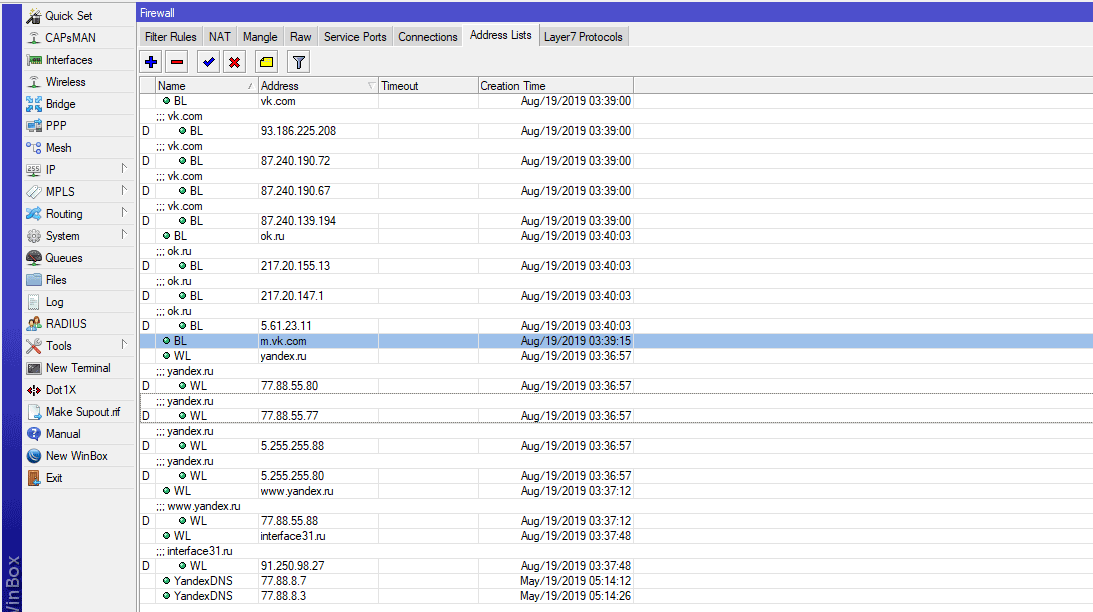 В данном примере реализовано два списка: WL - белый список и BL - черный список. Обычно в реальной жизни используется что-то одно, в нашем случае создание данных списков обусловлено сугубо учебными целями.
