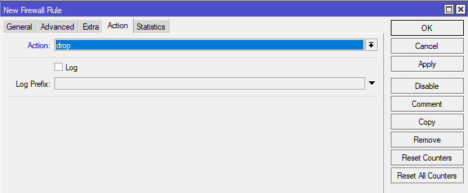 И наконец на закладке Action указываем действие, обычно везде в интернете указывают drop, хорошо, укажем и мы.