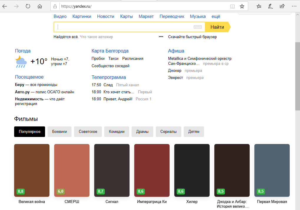 Добавим к разрешенным несколько адресов, в нашем случае yandex.ru и interface31.ru и попробуем открыть один их них. Яндекс открывается, но выглядит довольно непривычно.