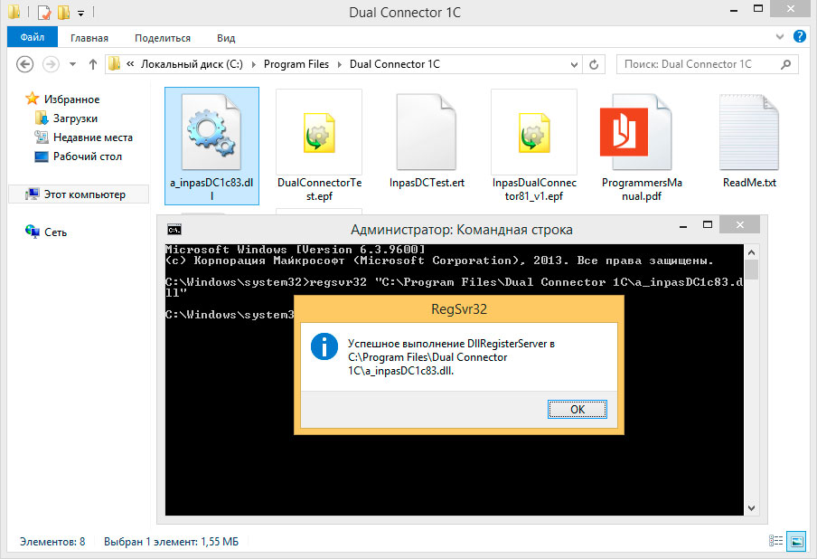 1regsvr32 "C:\Program Files\Dual Connector 1C\a_inpasDC1c83.dll"