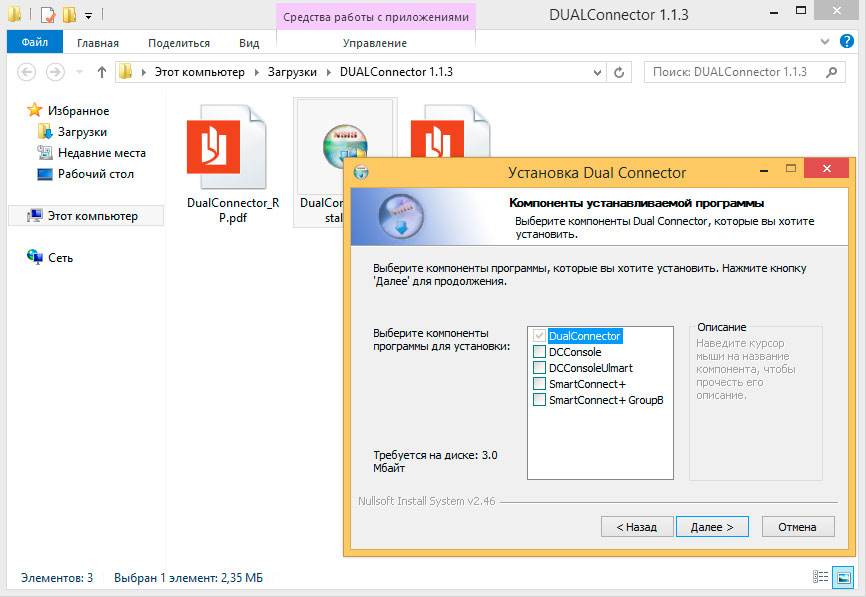 Также можно воспользоваться универсальным пакетом Connectors Install 1.1.3.rar, который обычно имеется у сотрудников поддержки банка, установив оттуда нужный нам компонент Dual Connector (не путать со Smart Connector, который могут рекомендовать сотрудники банка).