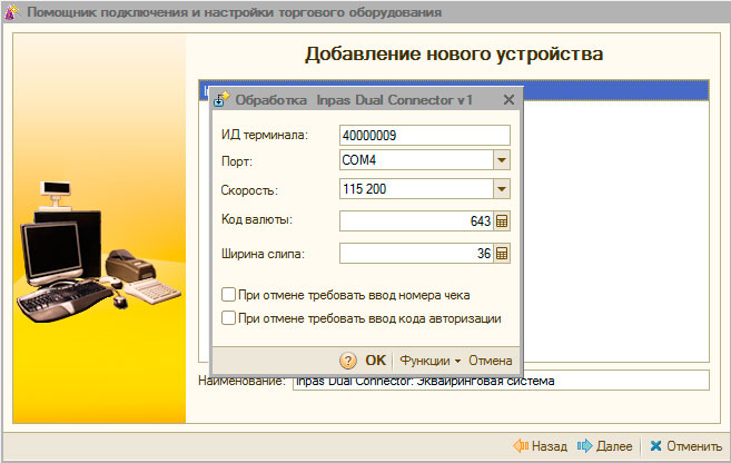 Настройка эквайринговых систем INPAS Smart Sale для работы в конфигурации 1С:Розница 1.0
