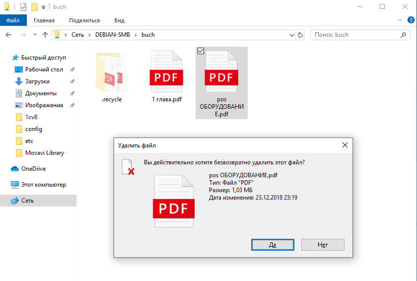 Перезапустим Samba и попробуем что-нибудь удалить.