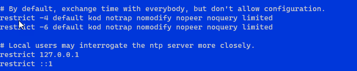 - noquery - запрет любых запросов для синхронизации времени поступающих с других серверов