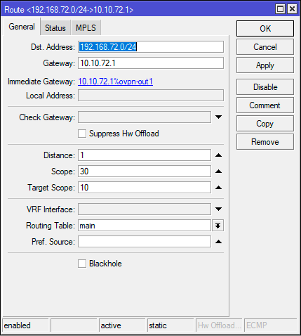 2add disabled=no dst-address=192.168.72.0/24 gateway=10.10.72.1 routing-table=main suppress-hw-offload=no
