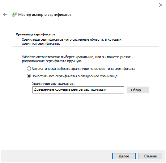 Хранилище сертификатов - Доверенные корневые центры сертификации:
