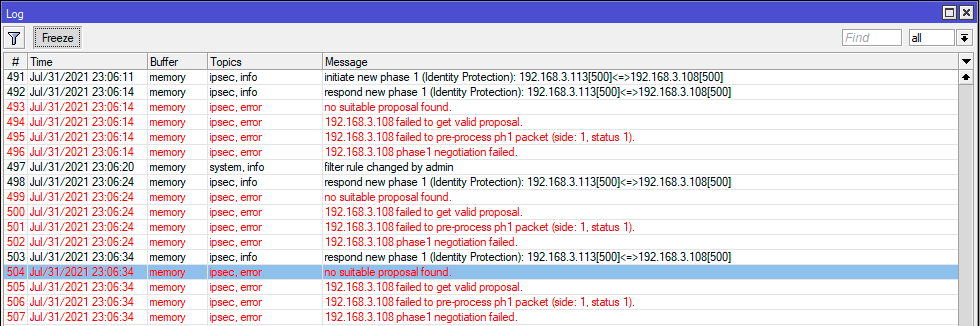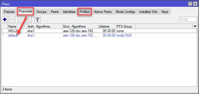 Важный момент связан с настройками IPsec, RouterOS использует для туннелей настройки по умолчанию и нет возможности это переопределить, поэтому на обоих роутерах профили default в IP - IPsec - Proposals и Profiles должны иметь одинаковые настройки.