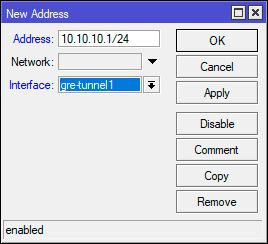 2add address=10.10.10.1/24 interface=gre-tunnel1 network=10.10.10.0