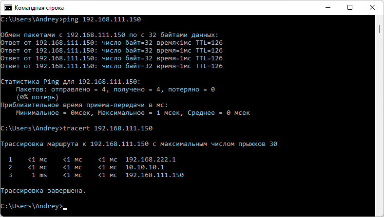 После чего пробуем получить из одной сети доступ к узлу другой. Если все сделано правильно, то попытка увенчается успехом.