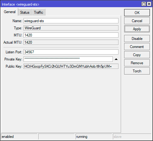 2add listen-port=34567 mtu=1420 name=wireguard-sts