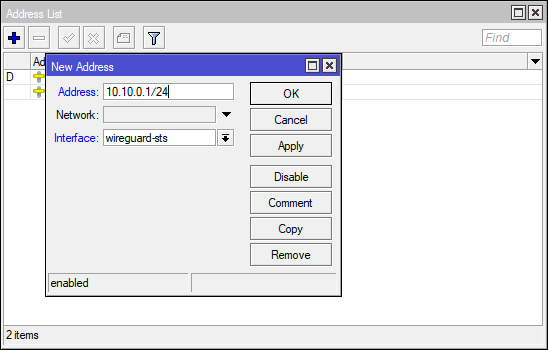 2add address=10.10.0.1/24 interface=wireguard-sts network=10.10.0.0