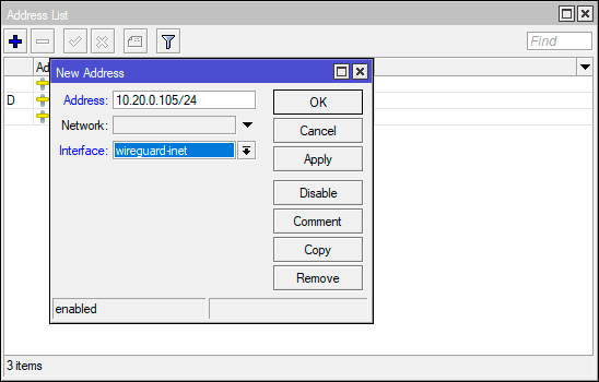 2add address=10.20.0.105/24 interface=wireguard-inet network=10.20.0.0