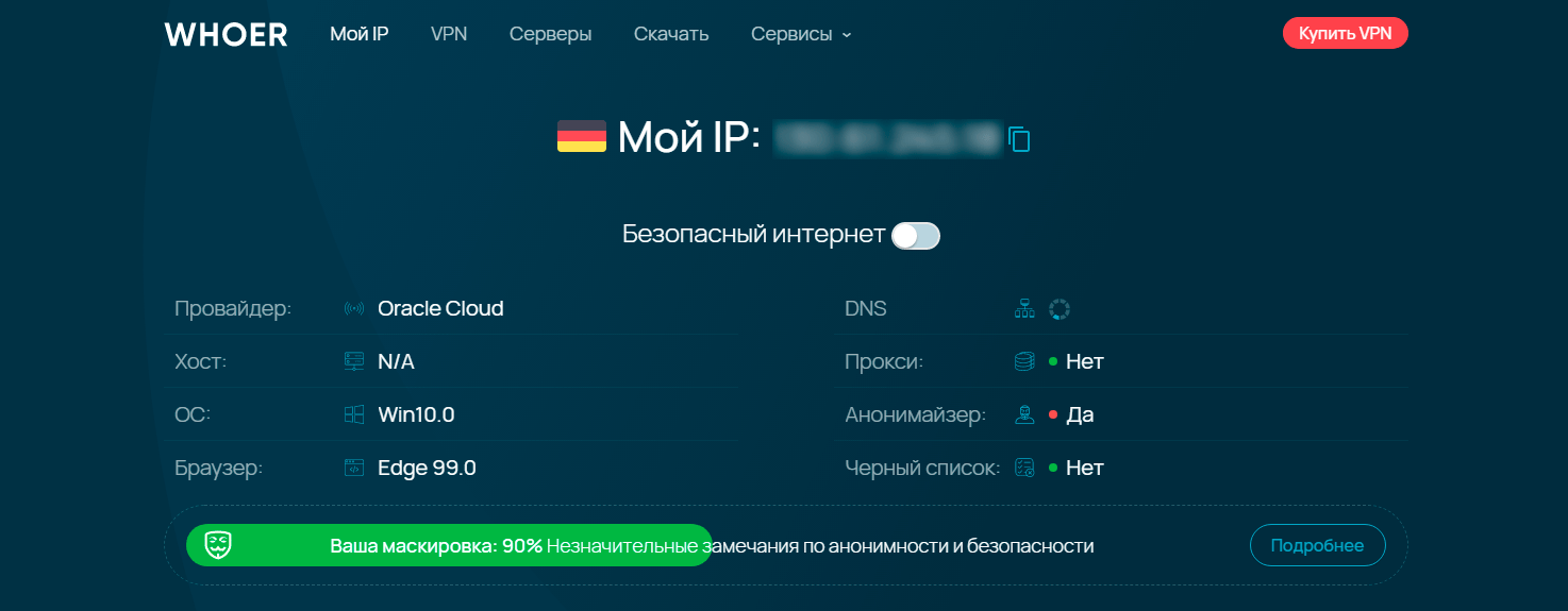 После чего все снова заработает. При этом уже только по одному внешнему виду сайтов несложно понять, что мы работаем через VPN с точкой выхода в Германии.