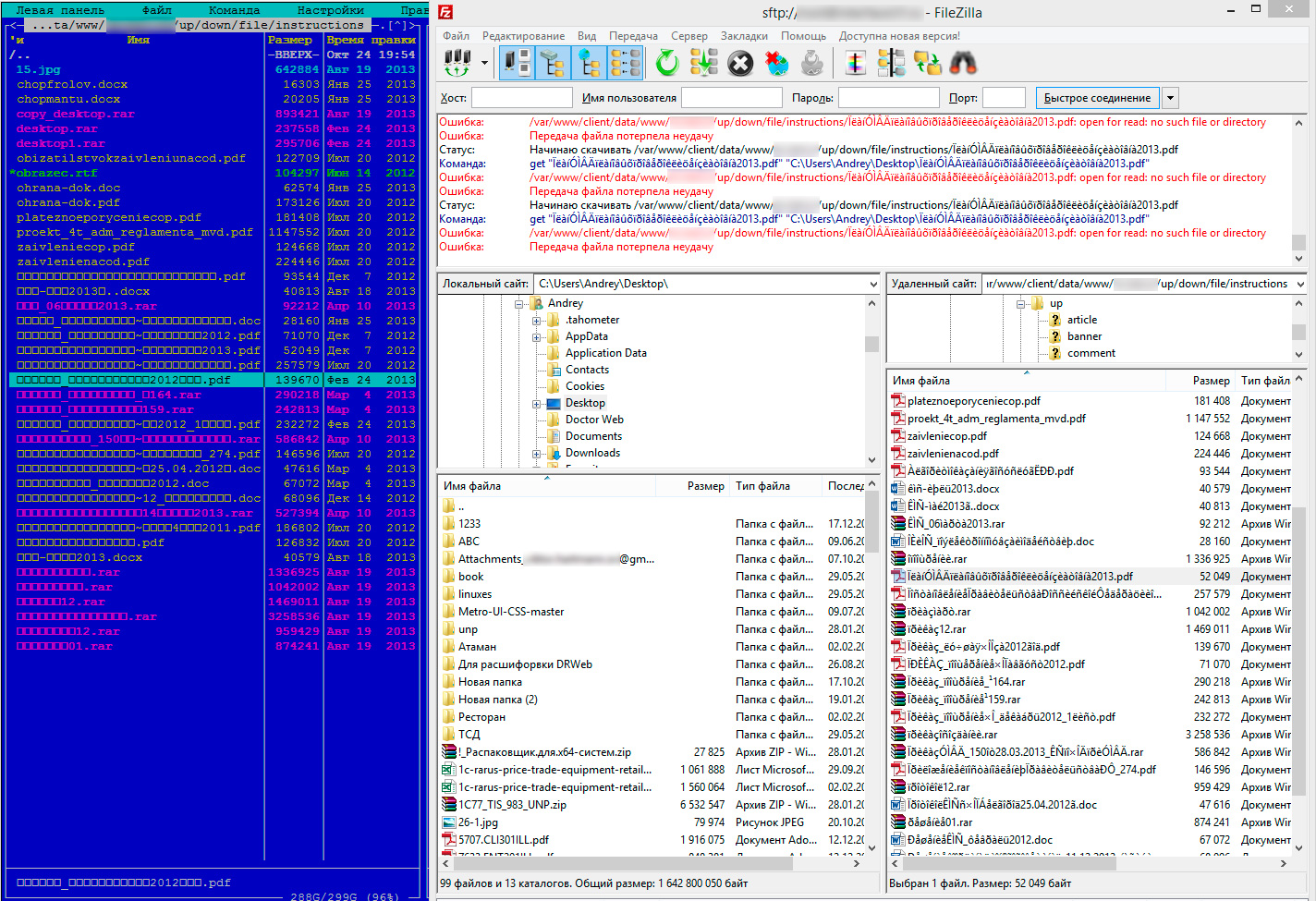 Ниже на рисунке прекрасный пример того, что бывает, если на нелокализованный сервер скриптом были залиты файлы с именами, содержащими национальные символы, в данном случае кириллицу.