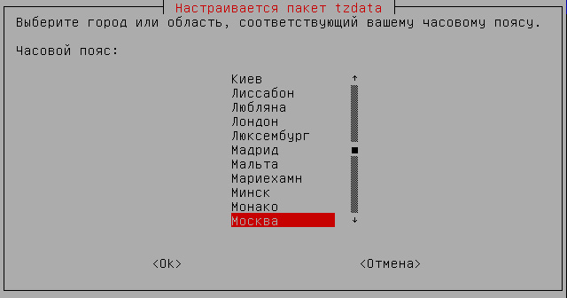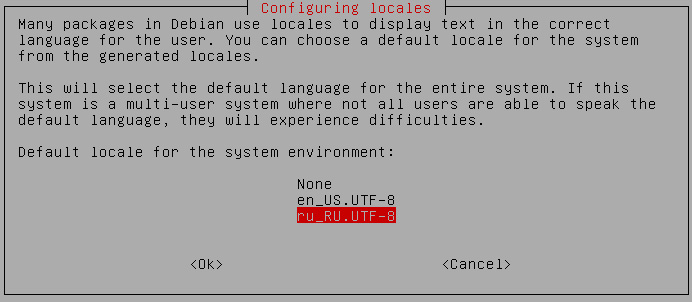 Затем укажите используемую по умолчанию локаль, тем самым установив язык системы: