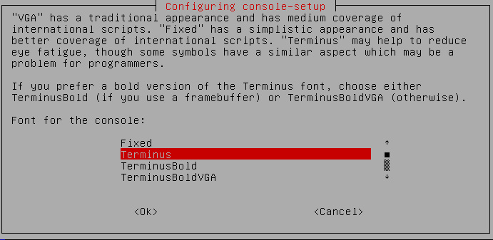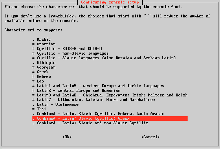 Здесь все настройки аналогичны Debian, выбираем кодировку, набор символов и настраиваем шрифты.