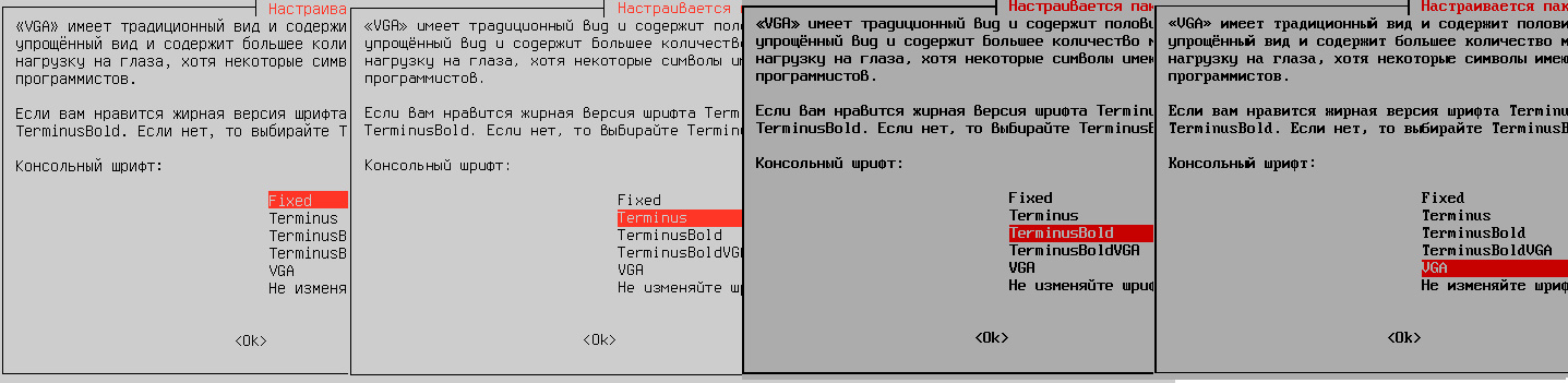 И используемый шрифт, здесь посоветовать что-то однозначно нельзя и следует исходить из личных предпочтений, в любом случае выбор можно всегда изменить, запустив утилиту повторно.