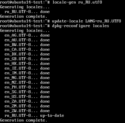 В Ubuntu Server команда dpkg-reconfigure locales не имеет псевдографического интерфейса и при запуске настраивает уже сгенерированные локали. Поэтому придется нужные настройки выполнить вручную, прежде всего сгенерируем русскую локаль (здесь и далее обращаем внимание на регистр команд):