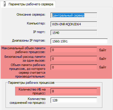 - Максимальный объем памяти рабочих процессов, значение по умолчанию 0;