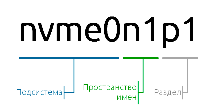 Чтобы понимать о чем пойдет речь в дальнейшем, рассмотрим некоторые ключевые особенности протокола NVMe, причем это касается не только NVMe-over-TCP, но и NVMe в целом. Давайте посмотрим на типичное наименование NVMe диска: