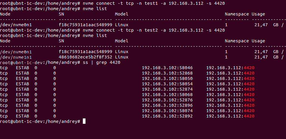 Как видим, ничего сложного в NVMe-over-TCP нет, но так как технология новая, то перед принятием решения о целесообразности ее применения рекомендуется выполнить всестороннее тестирование.