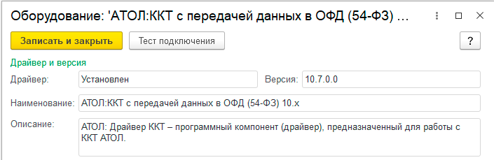 Кстати, мы настоятельно рекомендуем для устранения путаницы изменить название загруженного драйвера с АТОЛ:ККТ с передачей данных в ОФД (54-ФЗ) 10.Х на АТОЛ:ККТ с передачей данных в ОФД (54-ФЗ) 10.7, явно указав версию, для чего - станет понятно чуть позже.