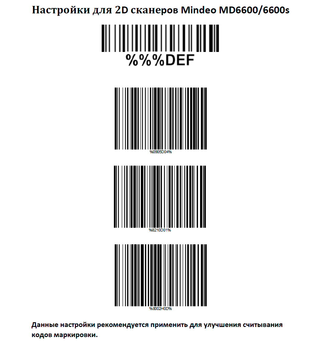 Для работы с маркировкой рекомендуется выполнить дополнительные настройки, последовательно считав следующие управляющие коды: