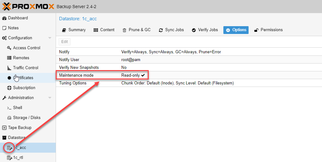 1proxmox-backup-manager datastore update DATASTORE-ID --delete maintenance-mode