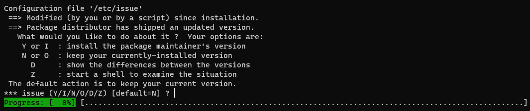 В процессе обновления вы можете получить запросы на перезапись некоторых файлов конфигурации: