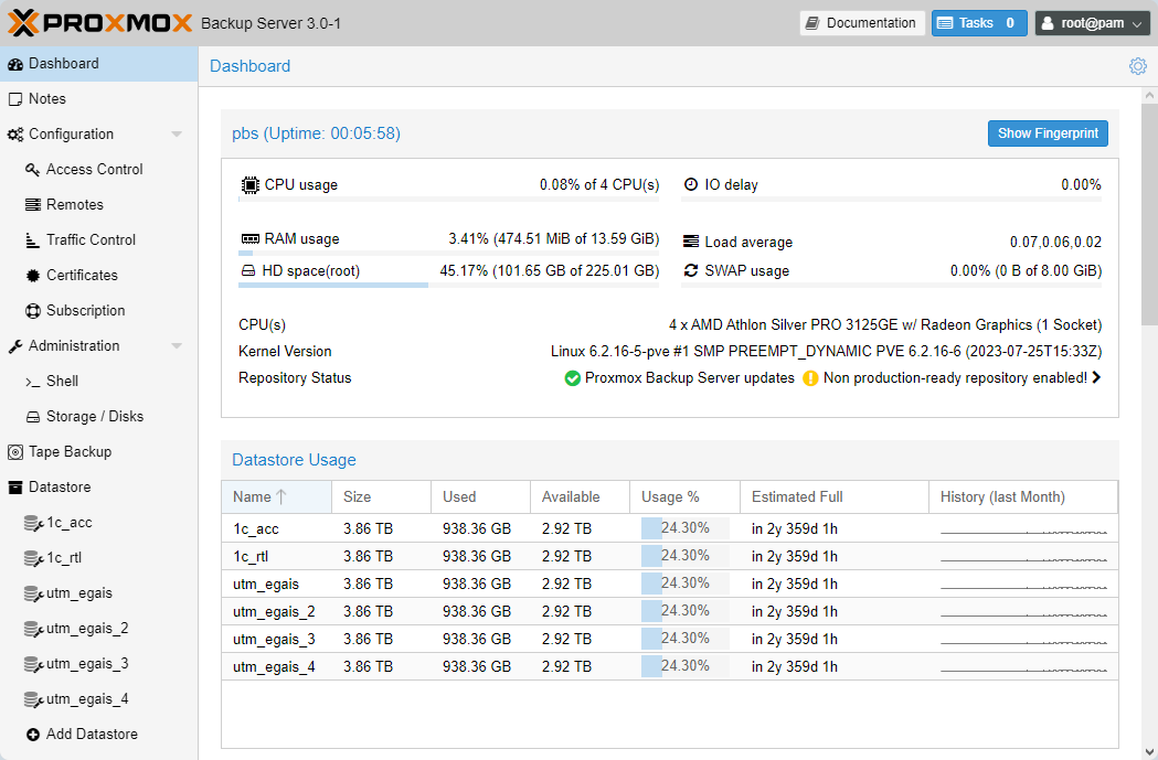 На этом обновление завершено, Proxmox Backup Server версии 3 совместим с гипервизорами PVE не только 8-й, но и предыдущих версий при условии, что на них установлены все последние обновления.