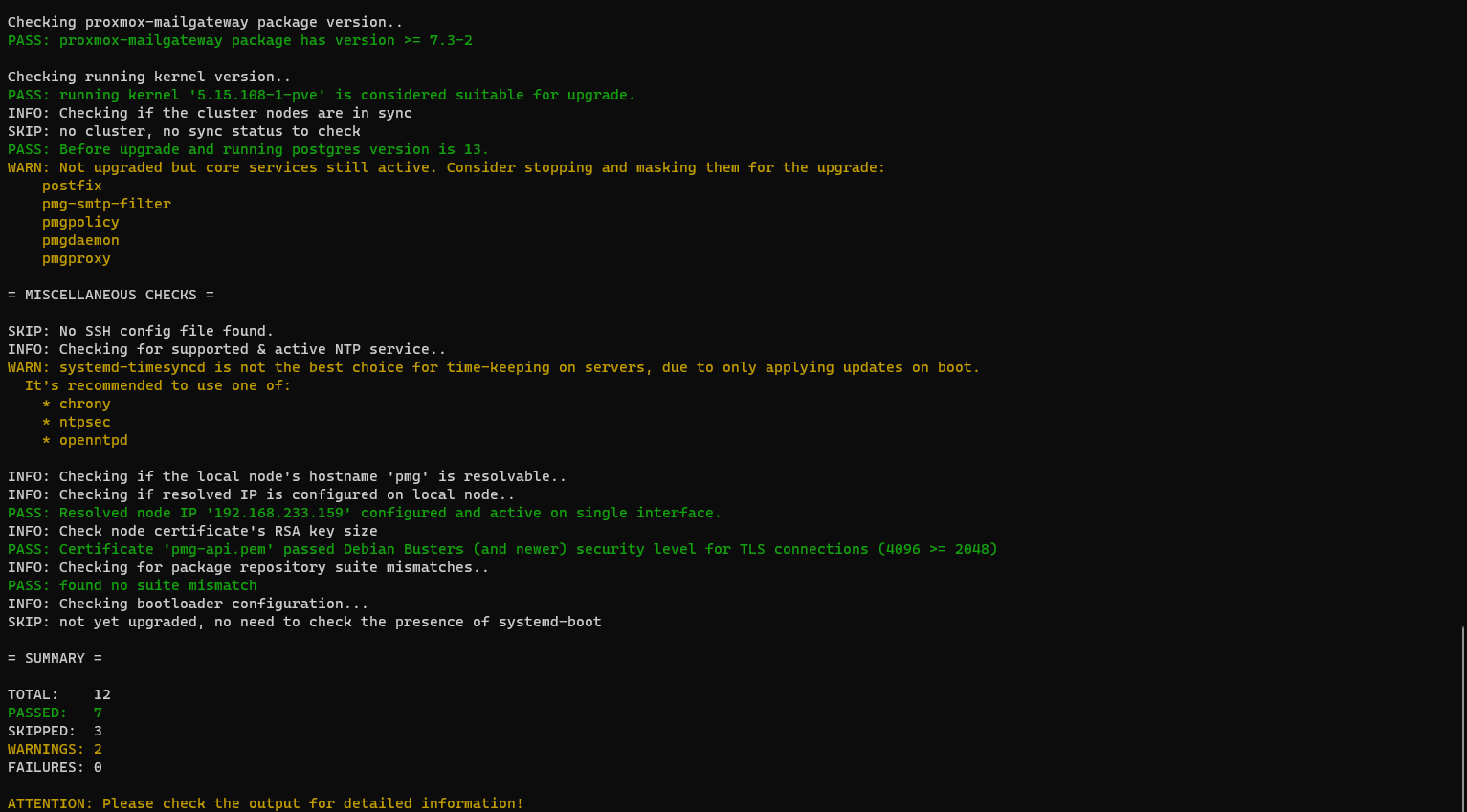 На этом процесс обновления Proxmox Mail Gateway на версию 8 завершен.