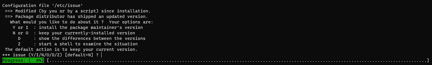 На вопросы перезаписи файлов отвечаем отрицательно - N или просто нажимаем Enter, так как "No" - действие по умолчанию.